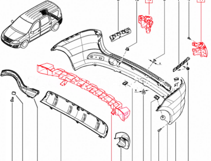 Усилитель заднего бампера средний для Лада Ларгус Оригинал 8200832180Применяемость: Лада Ларгус