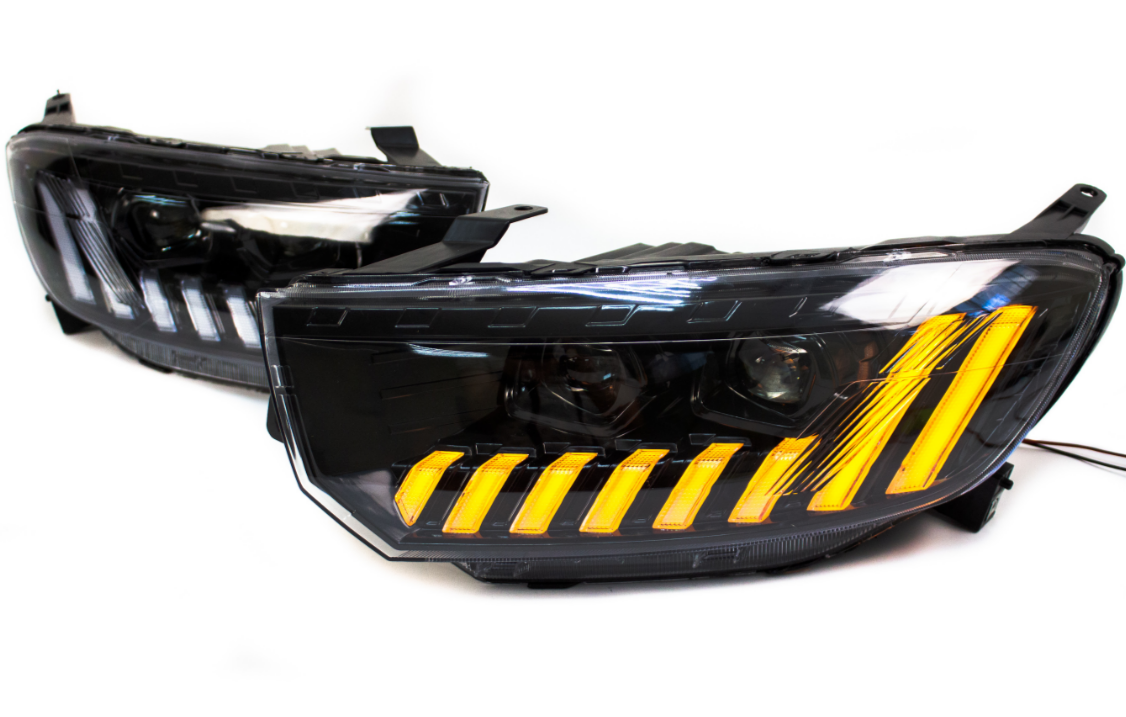 Фары Lada Granta FL в стиле Audi Q8 с двумя БИ-LED линзами, динамическим розжигом ДХО и поворотниками