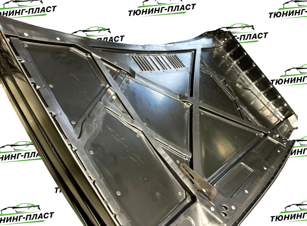 В самом корпусе капота интегрированы 2 стальных усилителя для фиксации на заводские петли автомобиля. Пластиковый капот имеет все технологические отверерстия для установки на автомобиль