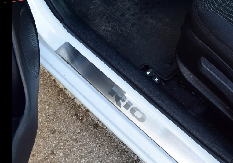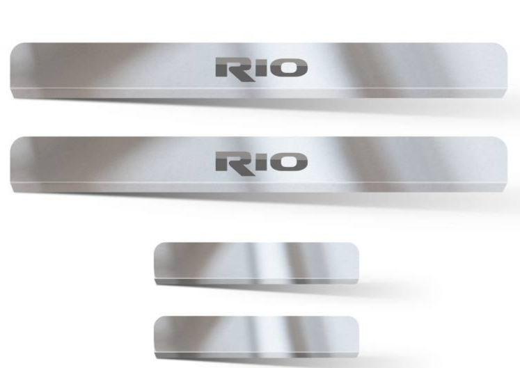 Накладки в проём дверей KIA RIO изготовлены из нержавеющей итальянской стали AISI 304, которая обладает высокой коррозионной стойкостью. Нержавеющую сталь выгодно отличает высокая устойчивость к воздействию химических реагентов. В отличие от металлической защиты покрытой хромом, нержавеющая сталь со временем не шелушится и, при правильном уходе, сохраняет блестящую поверхность во время всего срока эксплуатации.